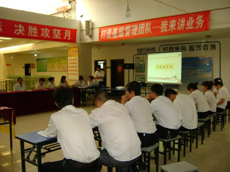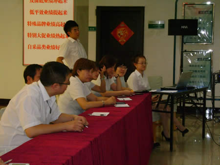 經(jīng)過(guò)兩番試卷考核之后,于2011年6月22日下午15:00時(shí)進(jìn)行了第一場(chǎng)實(shí)操PK賽——我來(lái)講業(yè)務(wù)部分的競(jìng)技。此次比賽均采用現(xiàn)場(chǎng)電腦隨機(jī)抽題,比賽人員現(xiàn)場(chǎng)準(zhǔn)備現(xiàn)場(chǎng)作答。業(yè)務(wù)展示題目涉及到賣場(chǎng)基層管理人員最核心、最基本的崗位知識(shí)、技能和職業(yè)素養(yǎng),如促銷管理、員工管理、VIP顧客管理、目標(biāo)責(zé)任管理等。