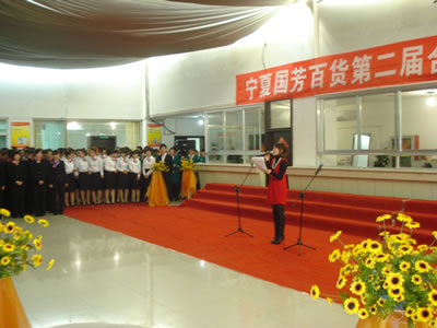 (主持人在現(xiàn)場(chǎng)宣布“寧夏國芳百貨第二屆合唱”節(jié)開幕)