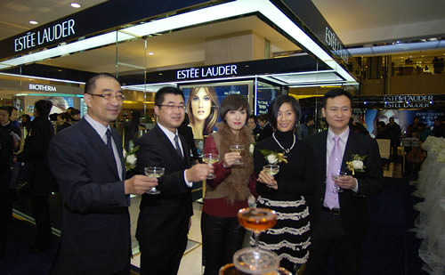 各位領(lǐng)導(dǎo)共同舉杯慶賀雅詩(shī)蘭黛蘭州國(guó)芳百貨專柜開業(yè)成功
