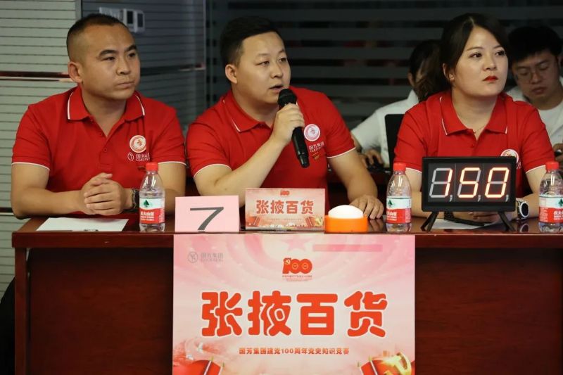 國芳集團(tuán)黨委書記張芳萍同志指出,黨史知識(shí)競賽既是一次黨性考驗(yàn)、能力提升,又是一次心靈洗禮、加油充電,更是一次理想信念的強(qiáng)化。希望同志們認(rèn)真對待這次競賽,以此次競賽為契機(jī),認(rèn)真學(xué)習(xí)黨史,真正做到知史愛黨、知史愛國、知史愛崗。